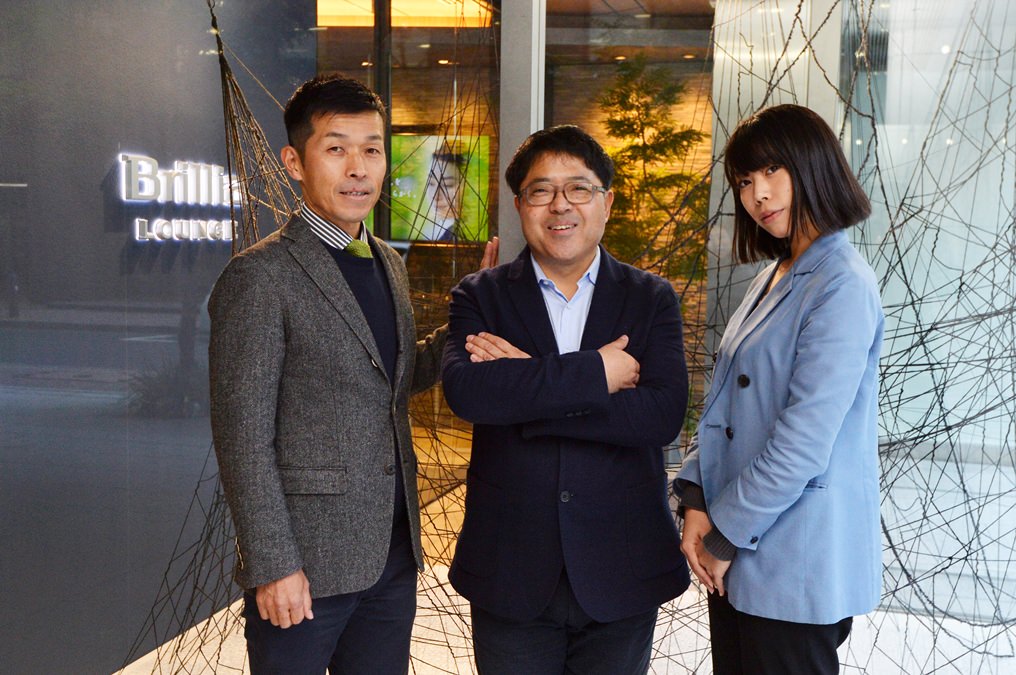 今回は、Brillia ART AWARDの仕掛け人である、東京建物 住宅事業企画部の遠藤崇さん(写真左)と萬由衣さん(写真右)、さらに、審査員を務める小山登美夫ギャラリー代表の小山登美夫さん(写真中央)に、同アワードならびにTHE GALLERYの展開と可能性について訊いた。