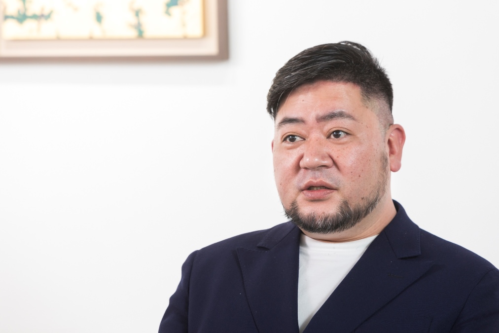 TOMOHIKO YOSHINO GALLERYオーナー・吉野智彦さん。近代美術全般を扱う吉野美術の二代目として2019年より、現代美術・プライマリー部門を担う。設立間もないギャラリーとしては異例のスピードで、海外のアートフェア、ART TAIPEIへの出展を果たす