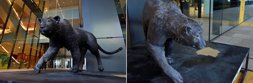 そして、その横で存在感を放っているのが、科学的な観察に基づいてリアルサイズの動物像を作ってきた瀬戸優さんの、水の上を歩く黒豹の立体作品だ。大学の卒業制作でもある同作は、これまで制作してきたなかでもとくに大きな作品のひとつだという。