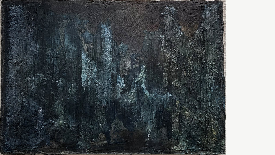 パネル上で、実際の凹凸を伴って築かれた抽象的な世界は、見る時間帯や光の角度、鑑賞者の気分によって多彩なテクスチャーを見せる。「鑑賞者の方たちにはぜひ作品の前で多くの時間を過ごしていただき、いろんなその表情を楽しんでもらえたらと思います」。