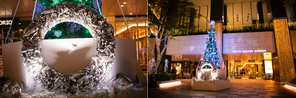 京橋駅直結の複合施設、東京スクエアガーデン(中央区京橋)では、今冬もそんな幻想的な光景が見られる。とりわけそのシンボルとなるクリスマスツリーは、今年は他ではなかなか見られないものとなっている。飾られているオーナメントにはなんと廃棄物が再利用され、そこにはペットボトルや文房具など、同ビルから出た廃棄物も使われているのだ。