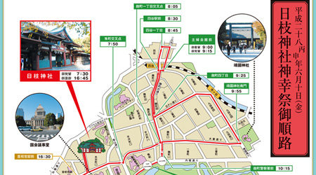 日枝神社神幸祭御順路 -平成28年6月10日-