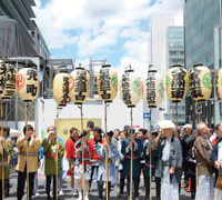 ちなみに、弘化三年の山王祭は神社の社殿修理のため六月二十九日(新暦八月二十日)に延期となっていた。この年に、標有さんの店の当時の所在地・通町(現日本橋一~三丁目)が、隣接の元大工町、呉服町(現八重洲一丁目)と共同で、付け祭りを出したのである。これらの町はやはり共同で、神功皇后の人形の山車を、祭行列の二十四番目に引き出している(59ページ参照)。標有さんは、この付け祭りを大江戸のメーンストリート(現中央通り)で見物して記録している。