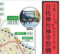 日枝神社摂社(茅場町)から、下町連合渡御はスタートする。(●)