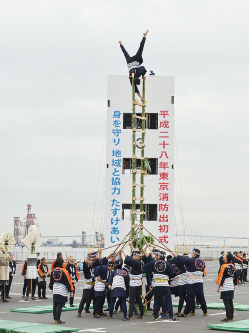 毎年1月6日に開催される、東京消防出初式での梯子乗り。(提供・一般社団法人江戸消防記念会)