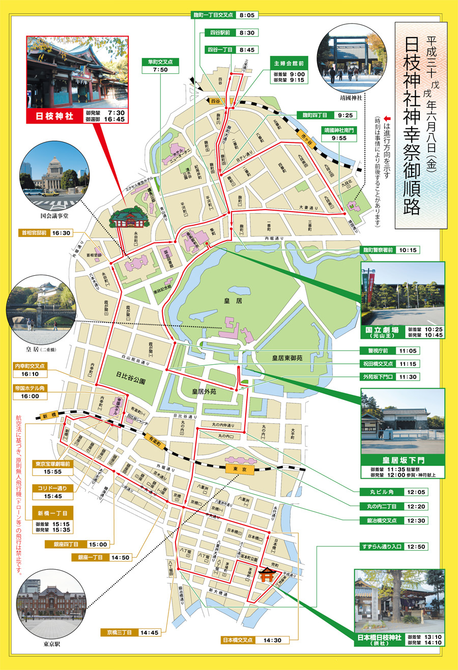 日枝神社神幸祭御順路のPDFはこちらから ※下町連合発行、月刊東京人制作「山王祭」2018年より転載