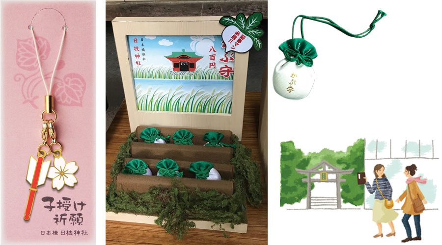 左:「子授け祈願の御守り」(1000円)。子授け、安産の御利益が。 中、右上:「かぶ守」(800円)。