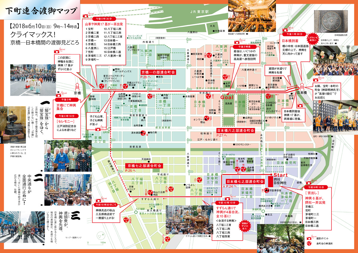 平成30年6月10日(日)に行われる「下町連合渡御」の地図と順路です。 撮影ポイントと各町会の神酒所もわかります!