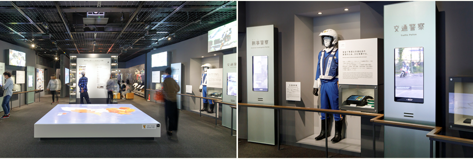 3階にはこれらのゲーム以外にも、交番勤務の新米巡査の目を通して交番の一日を疑似体験できる「警視庁京橋警察署」や、モニターに映った自分の姿に警察官の制服を重ねて、様々な着せ替えを楽しむ「いつのまにか警察官」といったコーナーもあります。