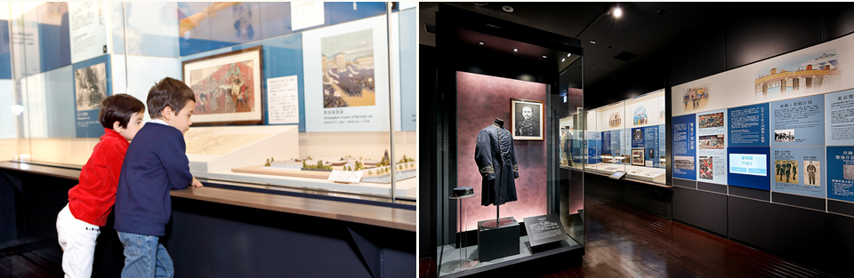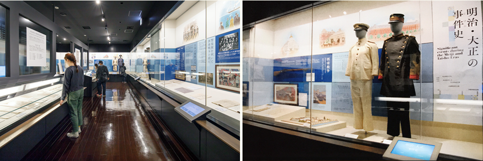左)ポリスミュージアムでしか見られない貴重な資料の数々。パネル解説の他に、より詳しい情報が盛り込まれた映像や、日・中・英・韓の4カ国語の音声ガイドも 右)川路大警視コーナー