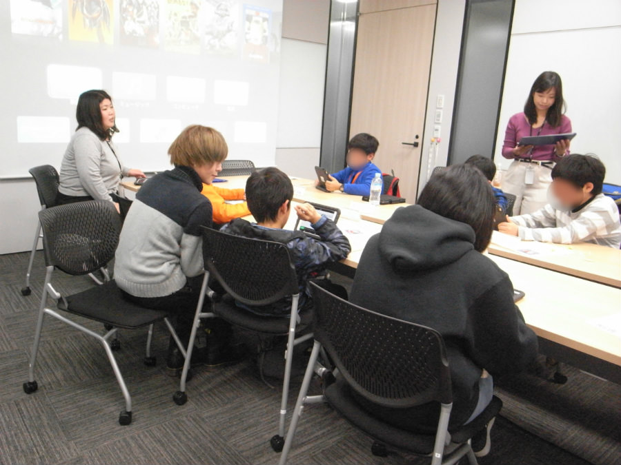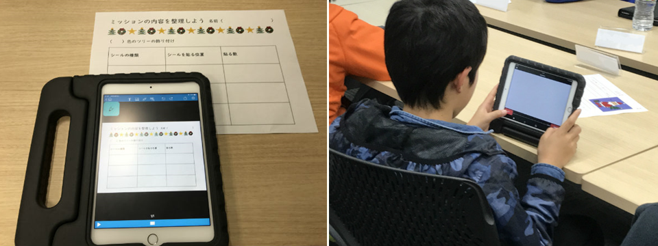 通常6回で実施されているブリキッの『ベーシックコース』を、2日間通しのカリキュラムとして45分×5回に再編成した冬期講習は、遠方からでも通いやすいと評判だ。自分の苦手を補うテクノロジーの基礎を知り、そのテクノロジーを「身につける」訓練、「使いこなす」 実践、と進む。取材当日は、3年生から6年生まで7人の生徒が参加。1人に1台ずつタブレッ ト端末が配布され、主にタブレット内にインストールされたアプリケーションで読み書きを 代替する基本操作を学んでいた。