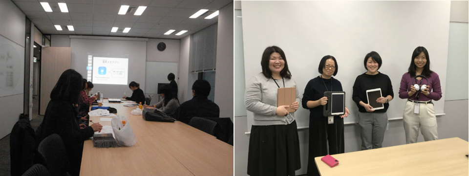 左)保護者は別室で授業をモニターでき、休憩中には授業で使ったアプリの説明がされる