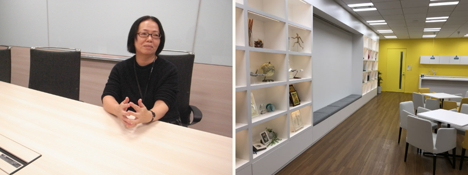 左)ブリキッの佐藤里美さん 右)教室は大型複合施設の中にある