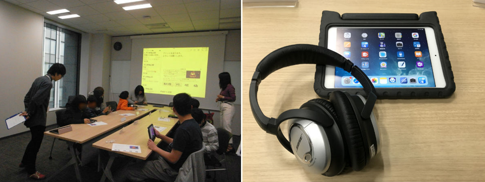 右)音にストレスを感じる生徒用のノイズキャンセリングヘッドホン。実際に着用させてもらったところ、空調音が遮断され、講師の話し声に圧倒的に集中できて驚いた