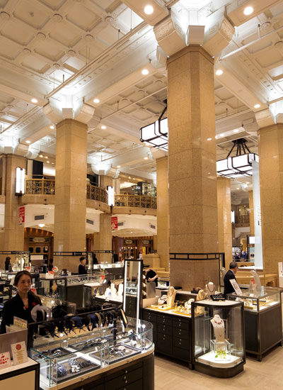 [左]2015年にリニューアルオープンした、明治屋京橋ストアーの正面入り口。地下鉄京橋駅に直結している [右]見やすく商品がならぶ店内