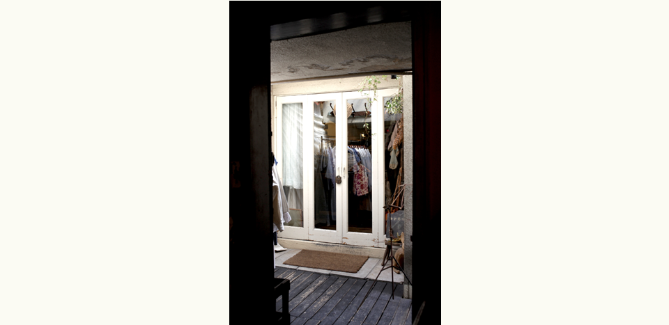 横見夫妻は、この場所と出会った当時を次のように振り返る。「日本に帰国後、自分たちの店を開こうと、物件をあちこち見てまわりました。ショップが多く集まる代官山や中目黒なども当たりましたが、どこもご縁がなくて」。そうして時間をかけ、ふたりはアンティークやヴィンテージとの一期一会の出会いにも匹敵する特別な場所を、京橋に見つけた。1962年(昭和37年)築のビルの屋上にひっそりと佇むその店へは、手動扉のエレベーターで向かう。最上階の5階から、さらに薄暗い階段を一段また一段と上がり、現れた白い板壁の小屋は光を集め、どこか異国の地を訪れたようだった。