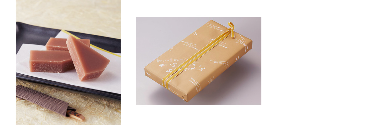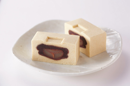 大宮人(おおみやびと)の高楼、つまりは皇居や神宮などの雅な建物の礎石をイメージした、日本橋本店限定の和菓子、楼(たかどの)。外側の黄身しぐれは、一度玉子を茹でてから作られており、なめらかな舌触りとともに口の中で溶けていく軽さが魅力。小豆餡で包まれた渋皮付きの栗の甘露煮との相性も抜群で、どこに出しても恥ずかしくない銘菓のひとつ。