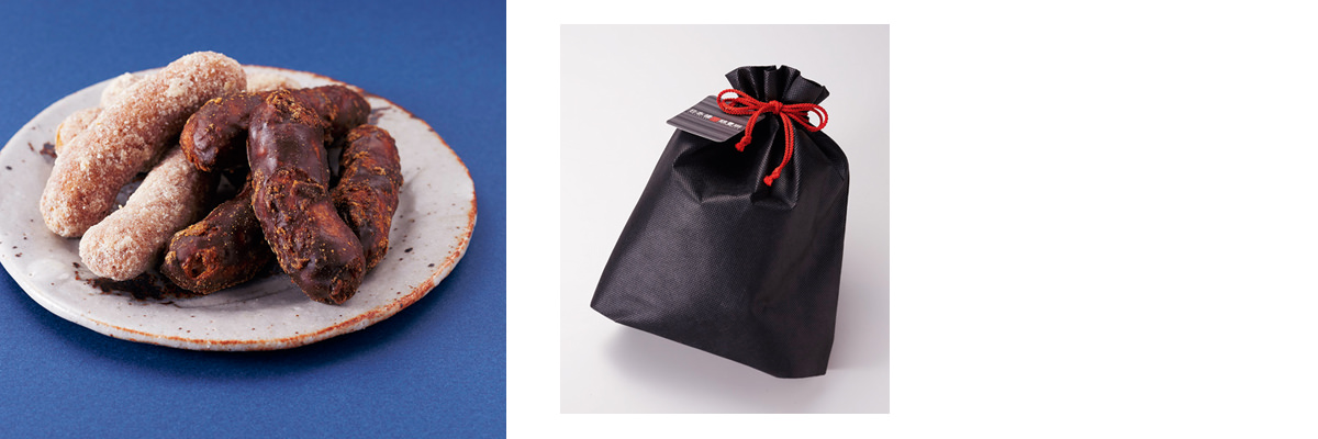一風変わったかりんとうが評判の日本橋錦豊琳。八重洲通りに面する本店では、直径2センチはある「極太かりんとう」を販売している。沖縄の黒糖を使った「黒」と北海道のビート糖を使った「白」の2種類で、いずれもパキッと噛めば、独自の製法で揚げられたサクサクの生地が崩れ、優しい甘さが口いっぱいに広がる。
