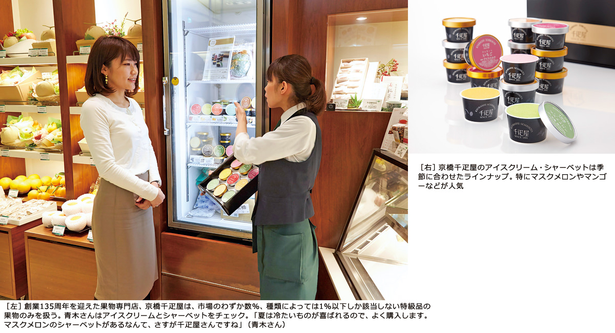 また、広告に起用する女優やモデルのために、早朝の撮影のときの朝食として京橋千疋屋でカットフルーツの盛り合わせを注文することもある。生菓子、焼菓子、冷菓など、その日の現場の状況や相手により、喜ばれるものが異なるため、彼女たちは日々のリサーチにも余念がない。