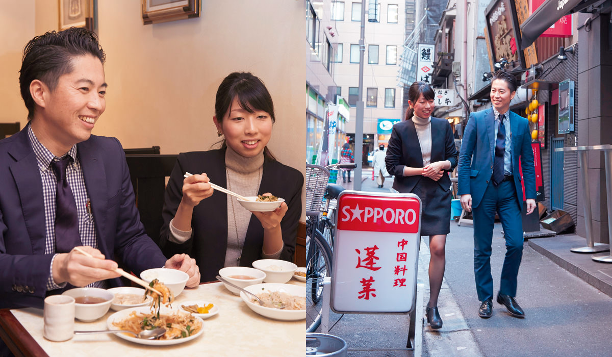 八重洲の路地にある中国料理の人気店、蓬萊。昼も夜も混み合うこの店で、ランチがてら話をしてくれたのは、UR都市機構の東日本都市再生本部・都心業務部に籍を置く、田嶋靖夫さんと菅沼結城子さんのお二人だ。田嶋さんは大手町第一チームの主幹として、大手町の連鎖型都市再生プロジェクトに取り組む。菅沼さんは中央区エリア計画チームの一員として、八重洲のまちづくりに携わっている。まちづくりのプロである二人に、八重洲のまちは一体どんなふうに映っているのだろう。