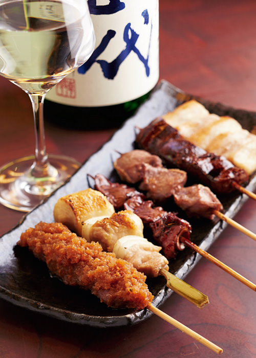 豚のハラミを叩いて焼いたスタミナ焼きを始め、ハツ、タン、レバ、豚バラなど串焼きが美味。プリプリ、ふわふわ、じゅわーっと串ごとに異なる食感が楽しい。和食や洋食、焼肉のほか「牛すじ赤ワイン煮込みバゲット添え」「完熟トマトのおひたし」などの創作料理も充実。計50種に及ぶ日本酒や焼酎と合わせて楽しみたい。