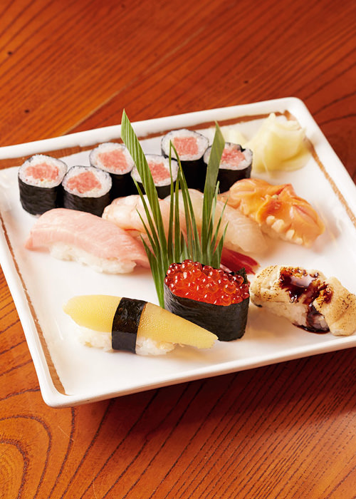 企業の接待でよく使われる、風格を感じさせる店構えながら、ランチは1000円前後とリーズナブル。夜はイカのやわらか煮や自家製さつま揚げなど、気軽に楽しめる品も多い。人気のにぎり(梅)はトロ、甘エビ、白身、煮穴子など8種類。ネタの甘味や食感を軽やかに握られたシャリが受け止める、正真正銘のにぎりが堪能できる。