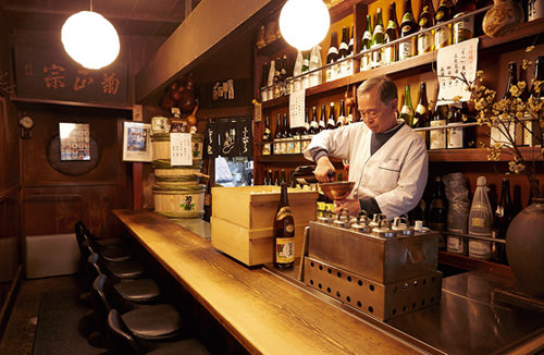 創業は昭和43年。京都の酒蔵玉乃光酒造の直営のため、季節の日本酒やみぞれ酒など、他店ではあまり扱っていない銘柄が楽しめる。輸送や保存にも気を使っているため「同じ銘柄でも店で買うより、ここで飲んだ方が旨い」と言われるそうだ。常連客も多く、夕方まではランチ客が主。人気メニューは特製だし巻玉子だ。