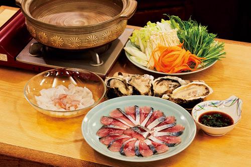 鍋は冬のものと決めつけることなかれ。伴で6~10月に楽しめるのが、鯖、タコ、牡蠣をしゃぶしゃぶでいただく「夏の三しゃぶ」だ。鯖は熱々の昆布だしに7回滑らせ、牡蠣はさっとくぐらせて、中は冷たいまま、ポン酢でいただく。活タコは好みの弾力を探したい。鯖には絶対の自信を持つ店だけに、鯖のたたきも人気が高い。
