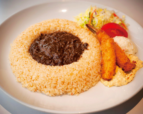 1階はイタリアンカフェをイメージしてリニューアルした喫茶室。洋食を出す2階は、昭和40年代から変わらないモダンインテリアにファンも多い。ランチは限定30食の「大皿ドライカレー」が人気。