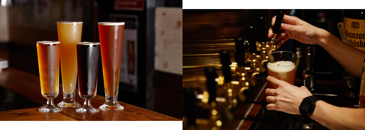 「オーナーも僕も、難しい顔をしてビールを飲むのは好きじゃない。あれこれ試しながら楽しく過ごして欲しいとの思いから、価格を抑えめにしました」と話しながら、統括マネージャーの川島裕二さんはやわらかな笑顔になった。クラフトビールとはあまり縁がなかった川島さんが出会って一転、その多様性に一瞬ではまったというように、風味は百花繚乱。思う存分徹底して飲み比べるなら、ひとりからでも対応してくれる食事付きの飲み放題プラン3000円~が頼りになる。