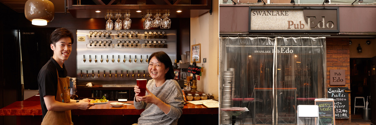 日本でもまた、クラフトビールはかなりのスピードで人気上昇中である。「国内醸造所やクラフトビールを扱う専門店が、ここ数年で増えましたね」と嬉しそうに話してくれたのは、八重洲「SWANLAKE Pub Edo 八重洲店」のフロアマネージャー・幸城誠(こうしろ・まこと)さんだ。創業1997年、新潟の醸造所SWANLAKEは、日本のクラフトビール界において草分け的存在のひとつ。2000年にアメリカのワールド・ビア・アワードで日本の醸造所として初の金賞に輝き、2006年にも同アワードで金賞を受賞するなど、国内外で数多くの賞を受賞してきた実力派でもある。店名の「Edo」は、江戸にかけているだけではなく、創業の際に醸造指南を受けた技術者エド・トリンガリーさんの名前にも由来している。醸造所直営のこの店は、東京駅の新幹線口から徒歩約5分。13時からの開店ということもあり、出張仕事を早めに終えたビジネスマンや観光客が訪れることも多いそうだ。