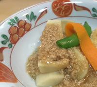 玉子ダレ(出汁と玉子を混ぜた甘めのタレ)をかけていただきます。