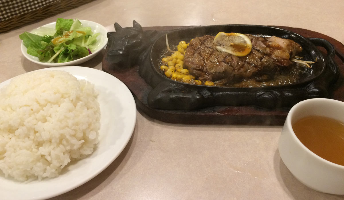 30食限定のサーロインステーキか京橋グリルランチで迷うも、 肉の誘惑から結局ステーキをチョイス。