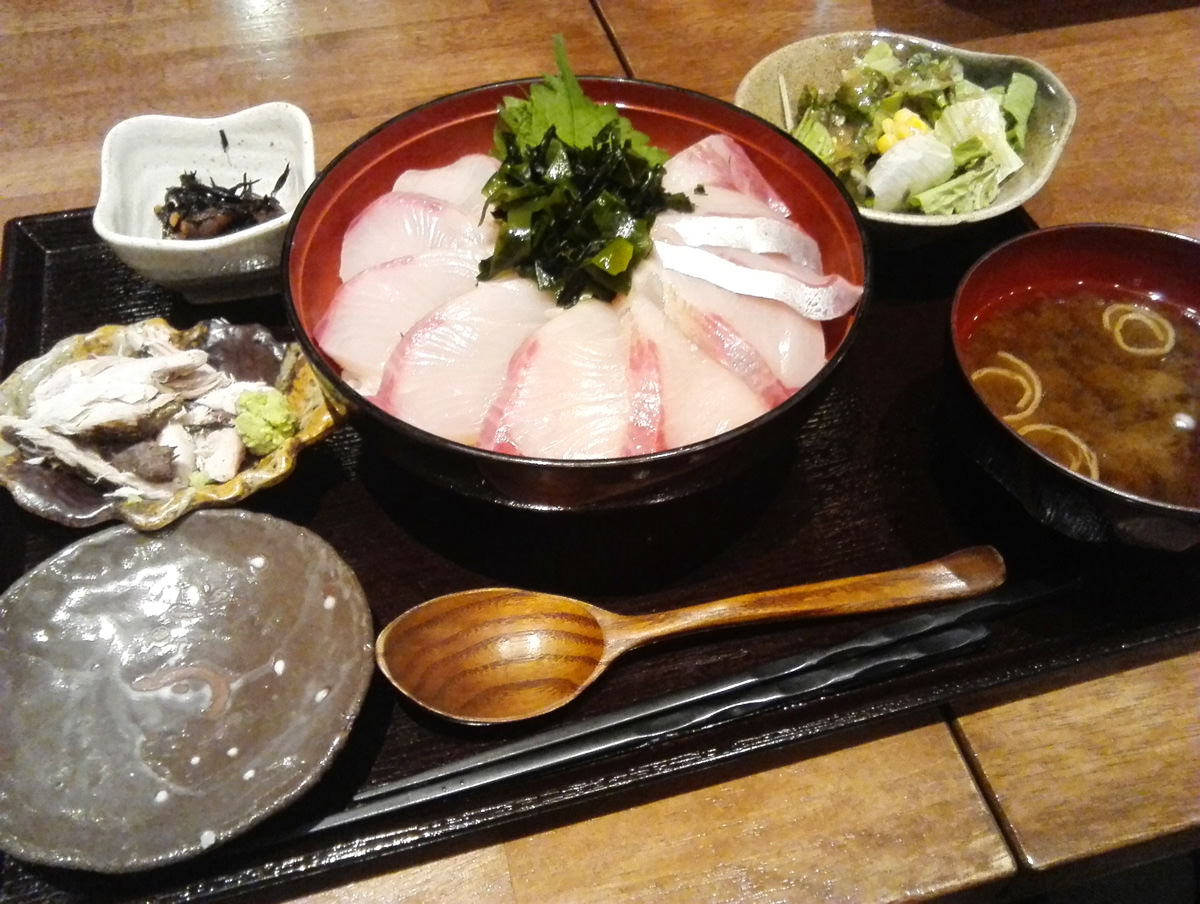 今日はご当地酒場 長崎県五島列島 小値賀町さんの「ひらす贅沢丼」をいただきました。