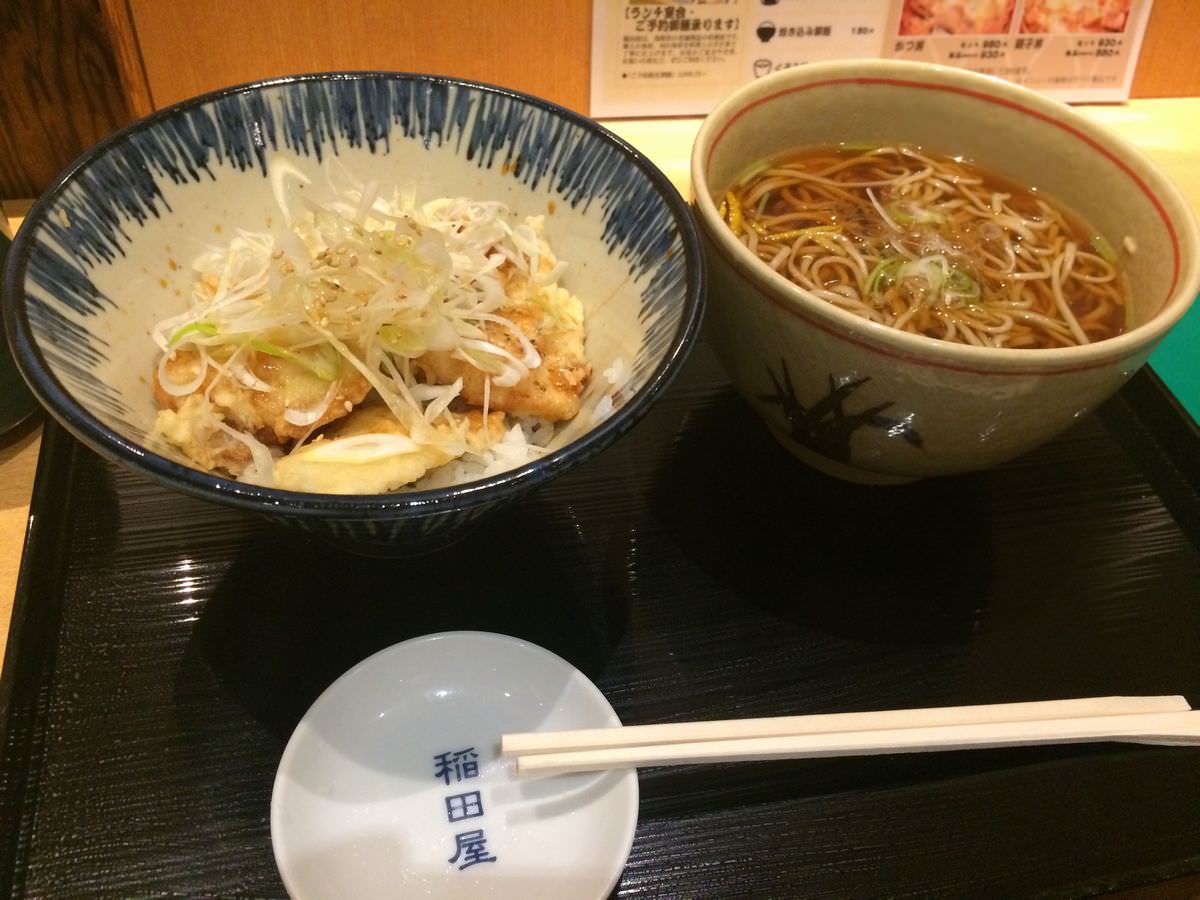 ランチで日本橋店限定のとり天丼とそばセットをいただきました。 ゴマ油が香る揚げたてパリパリのとり天はヘルシーでボリュームもあります。