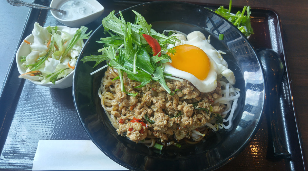 「汁なしガパオのせそば」に「パクチー増量」を注文しました。