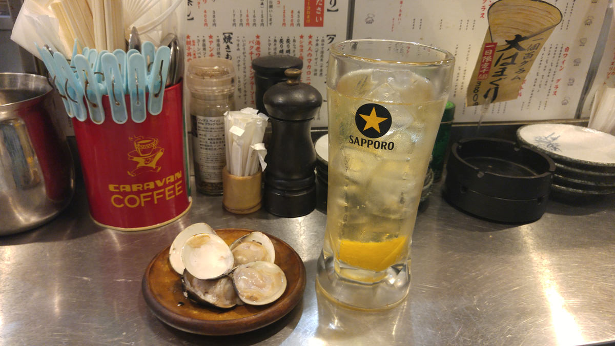 お通しは、店名どおりの焼きはまぐり。3個か6個か選べます。