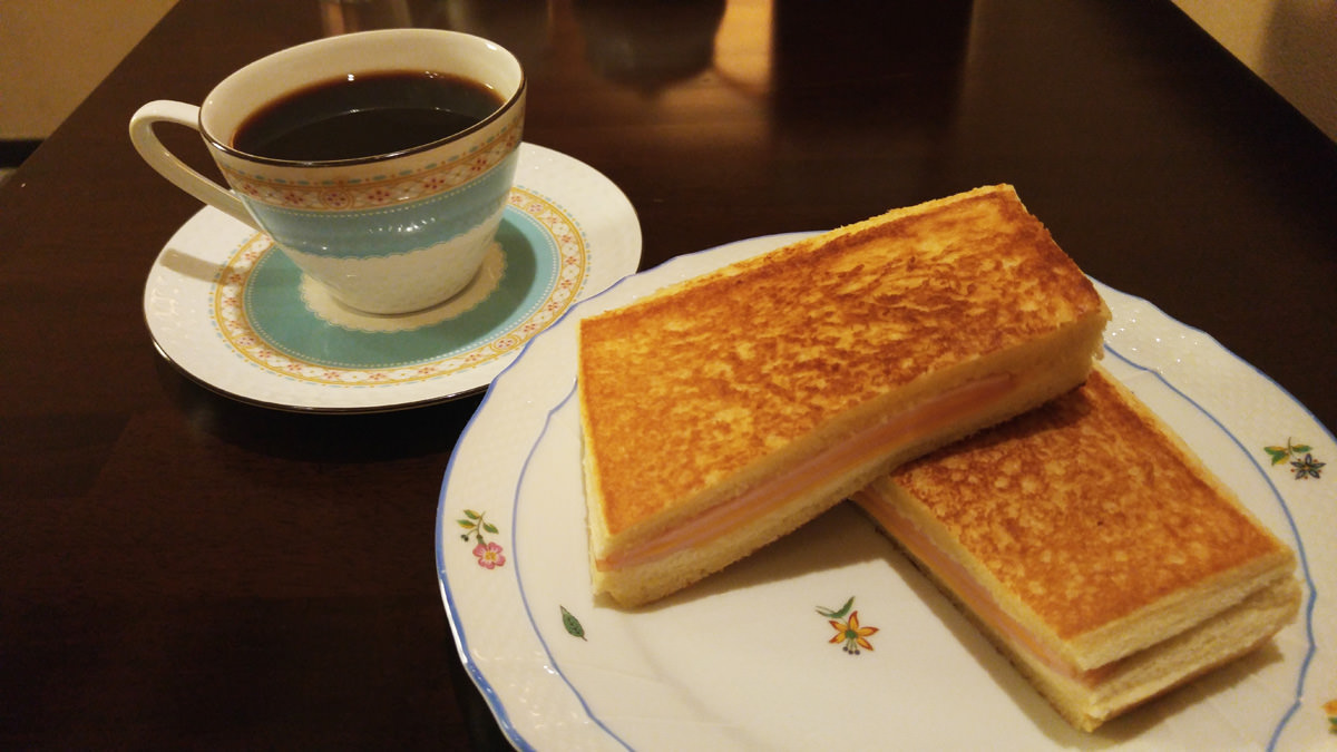 ブレンドコーヒーとクロックムッシュ(ハムとチーズ)。