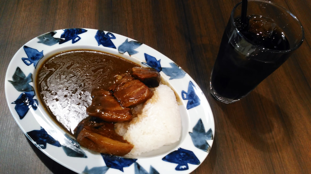 食べたのは「角煮カレー」。ドリンク(コーヒーor紅茶)付きです。