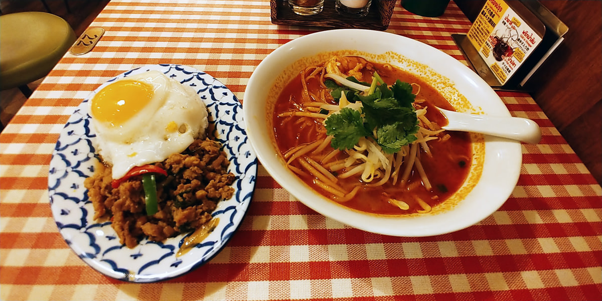 いただいたのは「トムヤムクンラーメンとガパオライスのセット」。