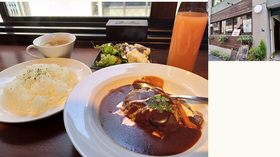 さて、今日はランチタイムにお邪魔したので煮込みハンバーグを注文。