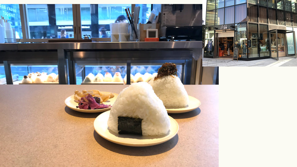 おにぎりメニューは、塩にぎり、湖魚佃煮、奥伊吹の梅、近江牛、など。具材は滋賀の食材
