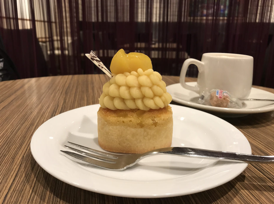 ショーケースを見て、苺のショートケーキや抹茶のケーキとも迷ったけれど、「モンブラン」と「ブレンドコーヒー」のケーキセットを注文しました。