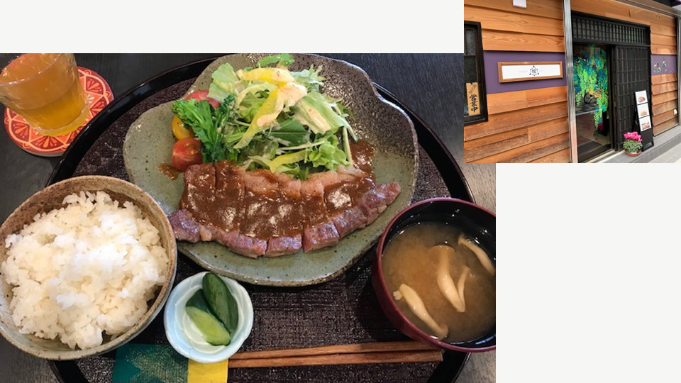 すると!おしゃれな雰囲気のお店のメニュー看板に『ステーキランチ(限定)』の文字が!