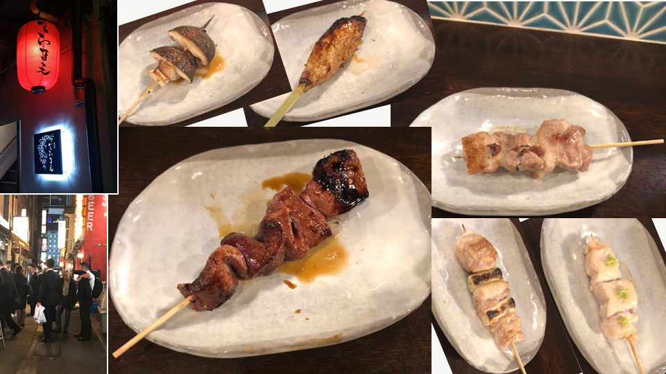 ささみ、鳥ねぎ、豚バラ、シイタケ、レバー、つくね