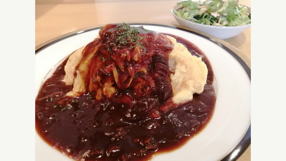 丸善さん伝統のポーク早矢仕ソースをオムライスにトッピング。