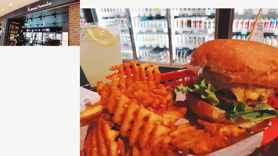 バーガーはジューシーなお肉に負けないトマト、ソース、バンズ。