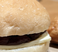 クレープのような薄めの生地でレタスとハムが包まれています。