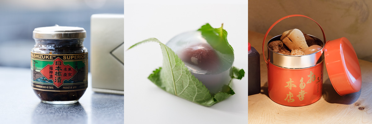 <日本橋漬>1912(大正1)年日本橋本銀町で缶詰を製造していた青木平四郎さんが従来の福神漬けを改良し、「日本橋漬」と名付けたのが起源。翌年より国分商店(現・国分グループ本社)が販売を手がけている。以来、保存料無添加の醤油に漬け込む伝統製法を継承。甘くなく、キリッとしたその味付けは、大人の街、日本橋にぴったり。また発売以来変わらないレトロなパッケージデザインも魅力。瓶(135g)560円、2本詰め合わせの「日本橋漬ギフト」1300円。賞味期限18カ月。