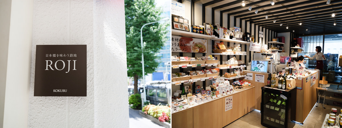 では初めに国分グループ本社株式会社の商品が揃う『ROJI日本橋』から。国分といえば幼い頃に食べた、青地に黄色い果肉の写真が印刷されたパイナップルの缶詰を今でも覚えています。4代國分勘兵衛さんが江戸・日本橋本町に「大國屋」の屋号で店舗を構えたのが始まり。創業時は呉服を扱うとともに、醤油醸造業を手がけていたと今回、新たに知って驚きました。その後、1880(明治13)年に醤油醸造業から撤退して食品卸売業を手がけ、現在に至るのですが、その国分が本社1階に2011年オープンさせたセレクトショップが『ROJI日本橋』なのです。